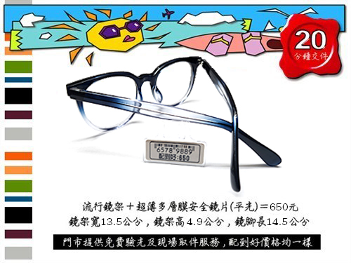 650元配到好 ☆ 流行鏡框78178267(藍)+ 超薄多層膜安全鏡片