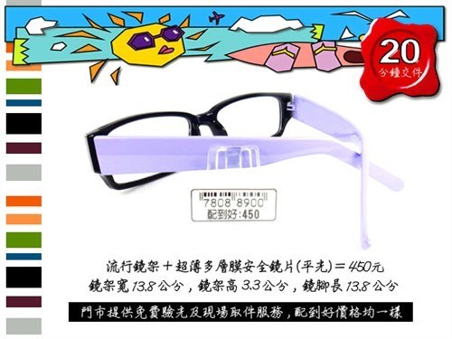 450元配到好 ☆ 流行鏡框78088900+ 超薄多層膜安全鏡片