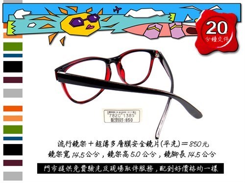 850元配到好 ☆ 流行鏡框78201385+ 超薄多層膜安全鏡片
